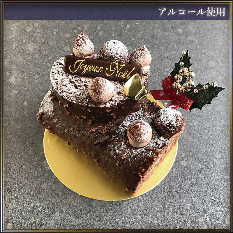コニャック入りシャンティショコラをチョコ生地で巻いたビュッシュ